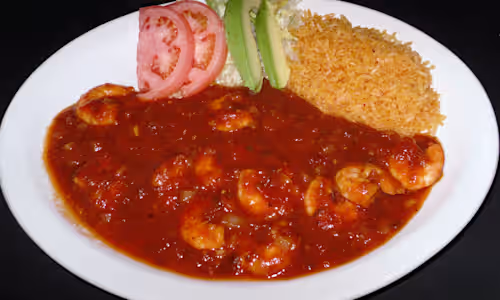 12 medium shrimp cooked with butter, onions, tomato and chipotle sauce. Served with rice, lettuce & avocado slices
